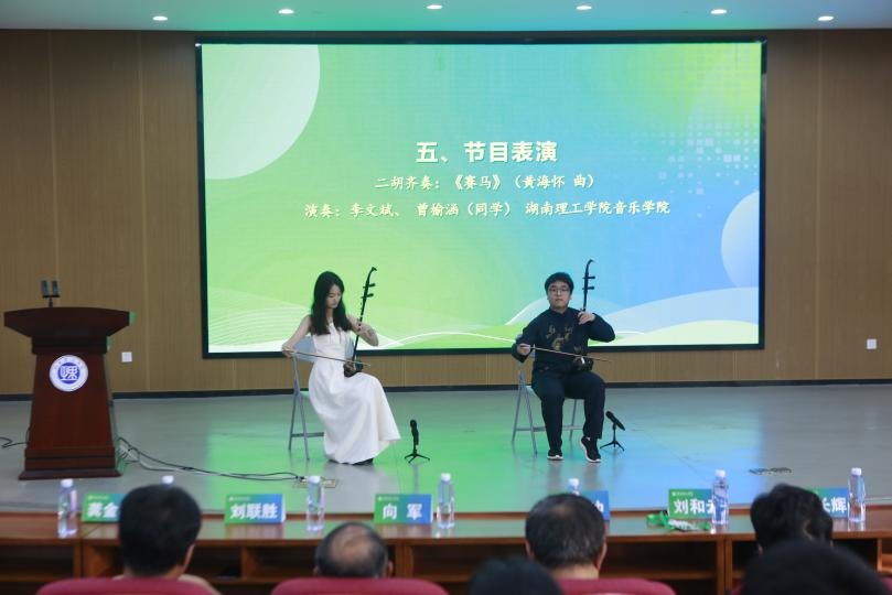 闭幕式由公司教务处处长彭鑫教授主持,华中科技大学陈刚教授对参赛作品进行了详细点评,并向各团队分享了自己多年来参与节能减排竞赛的宝贵经验。音乐公司带来《美丽的心情》女声独唱、《赛马》二胡齐奏的精彩表演。随后,进行了庄严的会旗交接仪式,第三届承办单位国防科技大学代表赵玉新教授进行了表态发言。最后,副董事长刘长辉教授宣布第二届湖南省老员工节能减排社会实践与科技竞赛顺利闭幕。