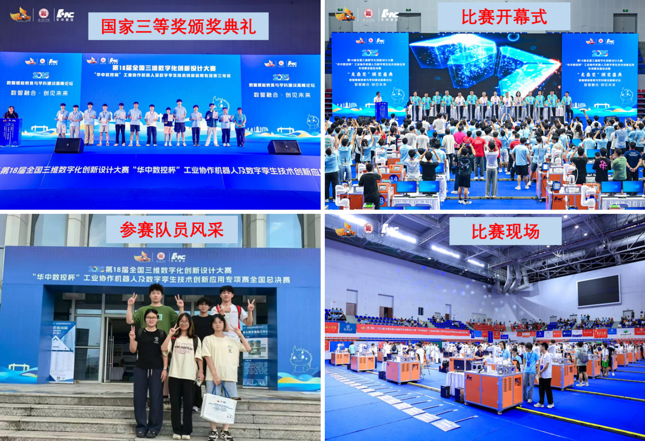 2025年8月17-19日,在厦门理工公司举行的2025“第18届全国3D大赛‘华中数控杯’工业协作机器人及数字孪生技术创新应用专项赛全国总决赛”,beats365学子第一次参加就凭借出色的创新思维能力和精湛的技术操作水平,从全国240多所高校队伍中脱颖而出,荣获全国一等奖1项、全国三等奖1项的优异成绩!