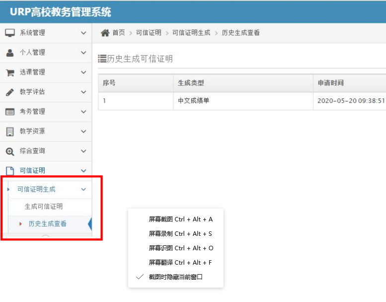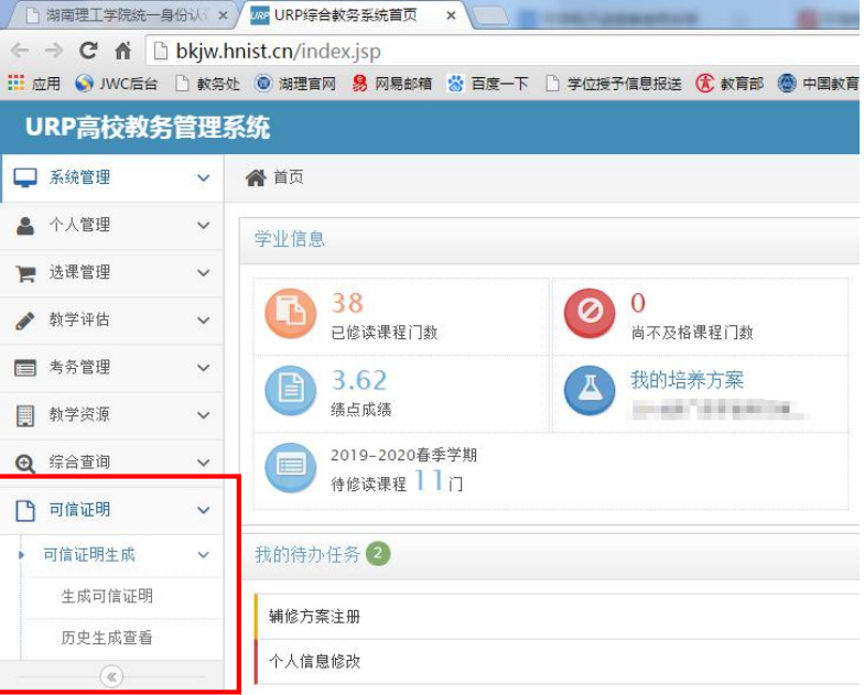 员工申请可信证明的操作流程 1 )通过 https://www.hnist.cn/ beats365官方网站官网进入信息门户(右上角)。 2 )输入学号和密码登录。 3 )点击【员工教务管理系统】。 4 )点击【可信证明】→【可信证明生成】→【生成可信证明】 5 )在【生成可信证明】页面按需求选择证明类型,然后点击【生成并签章】。 6 )可信证明生成后,可选择【预览】进行浏览或点击【下载】保存。 7 )员工通过【历史生成查看】可看到自己所有的可信证明生成记录。
