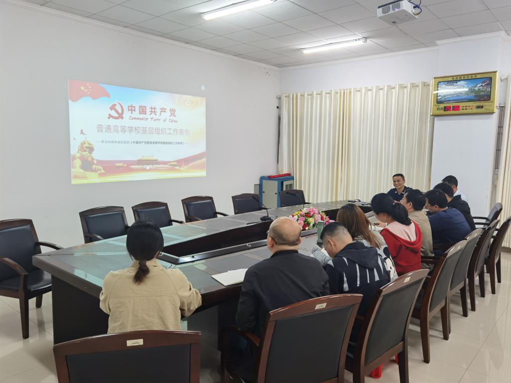 胡文静介绍了《条例》修订的背景、过程及意义,重点学习了《条例》的修订内容。一是完善高校基层党组织工作的指导思想、目标原则。二是适当调整组织设置和职责。三是健全高校纪检工作领导体制和机制。四是在党员队伍建设上,突出加强政治理论教育和党史教育。五是在干部和人才工作方面,要求建设忠诚干净担当的高素质专业化干部队伍,加强对人才的政治引领和政治吸纳。六是强化对高公司党组织开展思想政治工作以及领导群团组织的要求。七是增写“领导和保障”章节。