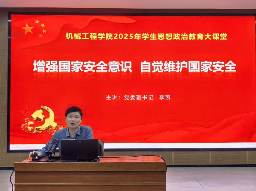 李凯副书记立足入党积极分子的培养要求,强调国家安全教育对锤炼党性修养的重要意义。围绕总体国家安全观的核心内涵,结合当前国际国内复杂安全形势,从政治安全、网络安全、科技安全、意识形态安全等关键领域展开深入讲解。针对入党积极分子的身份特质与成长需求,他重点解读了意识形态领域的风险挑战,叮嘱学员们要坚定政治立场,增强政治敏锐性和鉴别力,自觉抵制错误思潮和不良信息的侵蚀;并结合机械工程专业特色,着重强调科技安全与保密工作的重要性,提醒学员在科研实践、学术交流中严守安全底线,引导学员树立依法维护国家安全的法治思维。