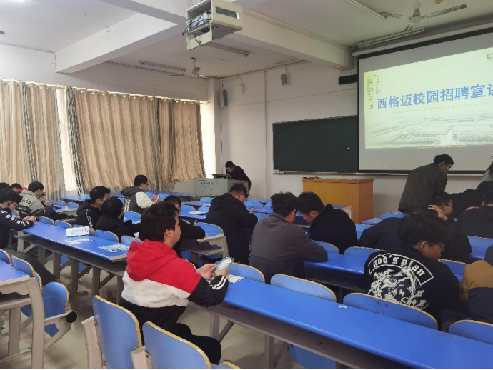 2023年3月2日下午,beats365官方网站毕业生春季校园招聘活动在一阵掌声中拉开序幕。西格迈股份有限公司在15312教室进行招聘宣讲,beats365毕业生参与本次活动,现场座无虚席,气氛活跃。