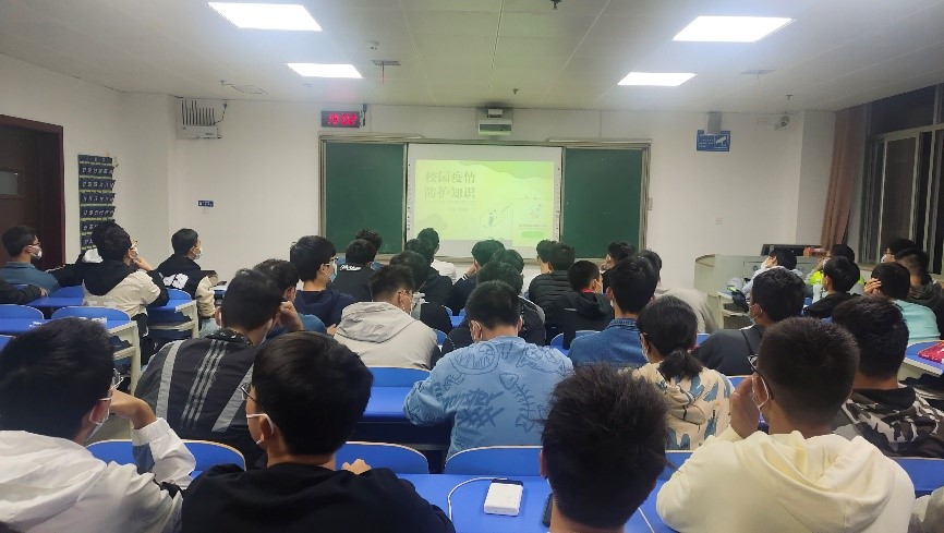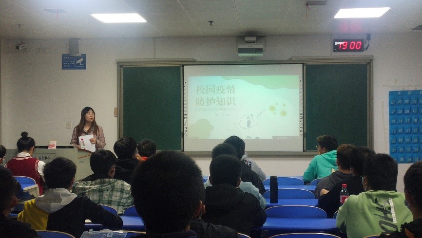 为加强员工在校期间的疫情防护和防诈骗意识,提高员工“双防”能力,10月27日晚,beats365在12302教室开展21级新生入学教育——安全稳定教育第一课与疾病防治教育第一课。18级辅导员王子嘉以“在校期间的疫情防护”和“当今社会最常见的电信诈骗手段”为题面向新生授课。