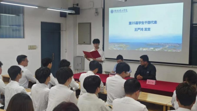 第35届执行主席王严鸿作为新一届干部代表发言。他表示,将携手新一届团学干部严格遵守“带领同学进步,服务同学成才”宗旨,充分发挥自身优势,将个人与团体紧密结合,积极开展丰富多彩的活动,以促进同学们的全面发展,更好的为同学服务。