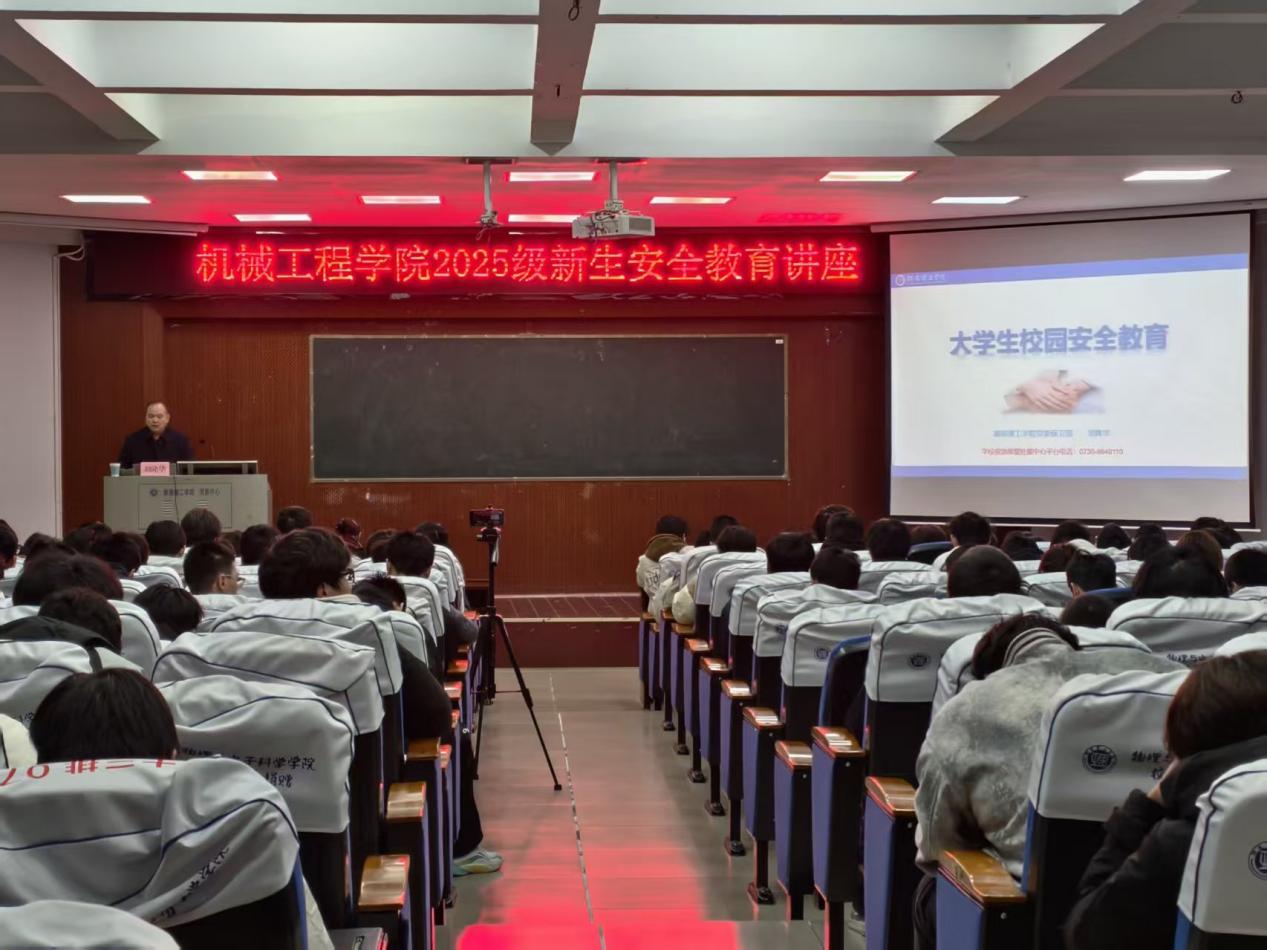 为提高新生的安全意识,护航员工长远发展,11月20日晚,公司于6号教学楼学术报告厅及6T2教室组织开展2025级新生入学安全教育讲座。湖南理工公司党委保卫部部长刘隆华主讲,院学工办主任李罗娜主持,全体2025级新生参与。