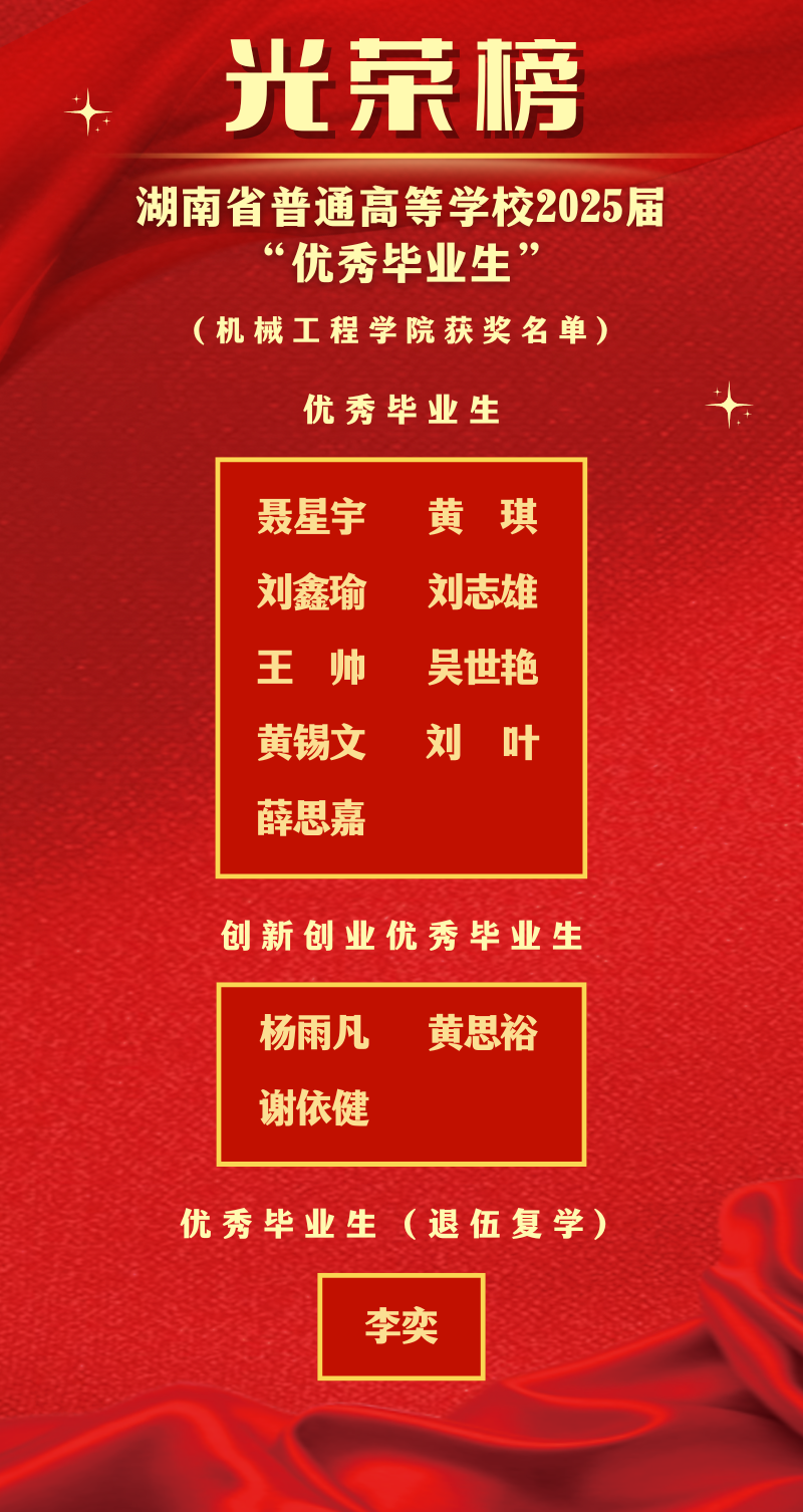 优秀毕业生是公司学子中的杰出代表,他们在求学时光里,不仅深耕机械设计、智能制造、工程实践等专业领域,以优异成绩筑牢知识根基,更在学科竞赛、科研项目、社会实践中勇挑重担——从攻克机械结构优化难题,到参与智能制造系统调试;从在省级创新大赛中斩获佳绩,到走进企业一线完成实习攻坚,始终以 “严谨、务实、创新” 的机械精神,诠释着新时代工科生的责任与担当。这份荣誉,是对他们数年寒窗苦读的最高认可,更是对他们扎根实业、服务国家制造事业的殷切期许。