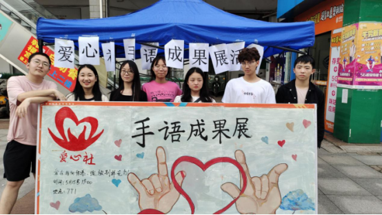 (1)手语是爱心社手语部的特点之一,举行的手语成果展是手语队员们近一个学年来学习手语的展示;